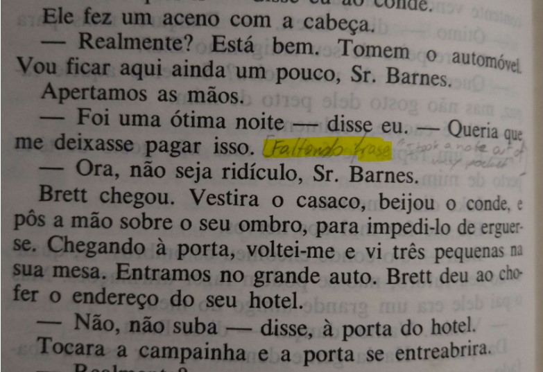 A conclusão então é triste: não temos no Brasil uma boa tradução de O Sol Também Se Levanta. A edição “menos pior” é a da Bertrand Brasil, por ao menos ter dado uma melhorada no texto.